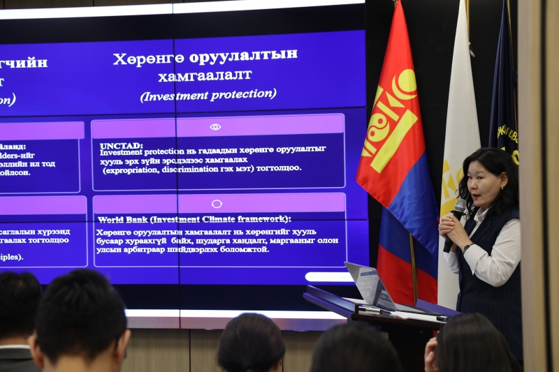 “Олон улсын туршлага ба хөрөнгө оруулалтын боломж” сэдвийн хүрээнд олон улсын хөрөнгө оруулалтын бодлого, туршлага болон Монгол Улсад хэрэгжүүлэх боломжийн талаар хэлэлцүүлэг зохион байгууллаа. Энэ үеэр БНСУ болон бусад улсын жишээн дээр хөрөнгө оруулалт татах бодлого, ODA (Official Development Assistance) төслүүдийн хэрэгжилтийн сорилт, үр нөлөө, тогтвортой байдлын асуудлыг хөндөн ярилцлаа. Тодруулбал, БНСУ-ын Инженер, технологийн их сургуулийн профессор, доктор Хян Дун Хүн Вьетнам Улсын 2026–2030 оны хөрөнгө оруулалтын бодлого, төлөвлөлтийн туршлагыг танилцуулсан бол БНСУ-ын Машин, материал судлалын хүрээлэнгийн ахлах судлаач, доктор И Дэ Хүн ODA төслүүдийн хэрэгжилтийн сорилт, үр нөлөө, тогтвортой байдлыг хангах боломжийн талаар илтгэл тавьсан юм.